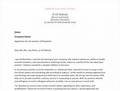 Dispatcher Cover Letter Template