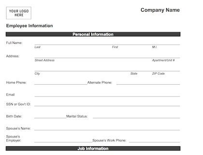 Employee Information Form Download - Word: