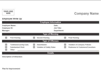Used properly, an employee write-up template can help you avoid having to take disciplinary measures and reduce turnover by helping employees get on track. It is now standard practice to complete an employee warning notice when infractions have occurred.