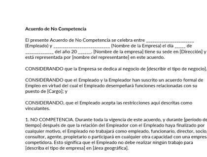 Descarga aquíPlantilla de acuerdo de no competencia: