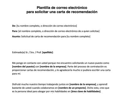 Descarga nuestra plantilla gratuita, en formato de Microsoft Word, y completa los espacios en blanco para solicitar una carta de referencia por correo electrónico.
