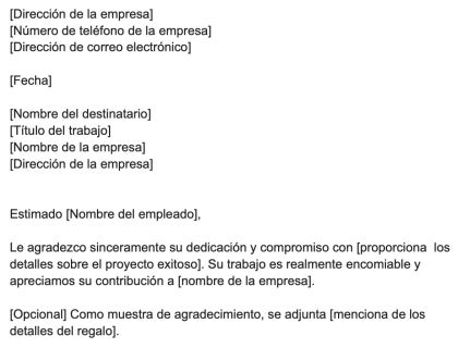 Le agradezco sinceramente su dedicación y compromiso con [proporciona los detalles sobre el proyecto exitoso]. Su trabajo es realmente encomiable y apreciamos su contribución a [nombre de la empresa].