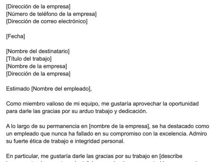 En particular, me gustaría darle las gracias por su trabajo en [describe brevemente el proyecto reciente]. Los empleados como usted hacen que mi trabajo sea aún más gratificante y agradable.
