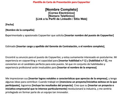 Descarga AhoraPlantilla de carta de presentación para Copywriters: