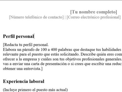 Investiga las secciones esenciales de un CV.