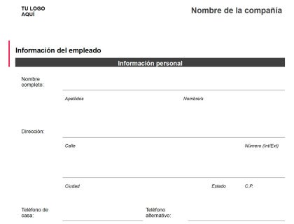 Descarga una plantilla para editar e imprimir del formulario de información de los empleados en formato Word.