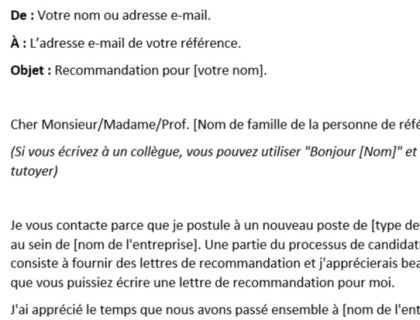 Objet de l'e-mail : Recommandation pour [votre nom].