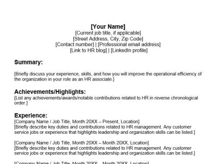 At the top of your resume, write your name, address, contact number, email, and LinkedIn profile. For out-of-state HR positions, foreground your virtual HR skills, highlighting competencies in relevant software as well as your prowess as a virtual recruiter. If you have an HR blog, this is an impressive resource to share with employers.