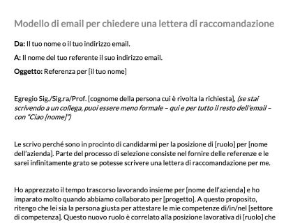 Scarica subitoModello di email per chiedere una lettera di raccomandazione:
