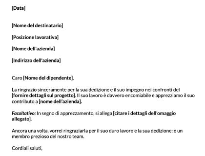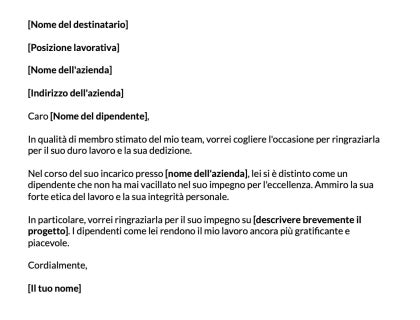 Lettera di ringraziamento ai dipendenti - Modello 1: