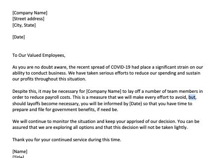 Download NowCOVID-19 Layoff Letter Sample Template: (Text Version)