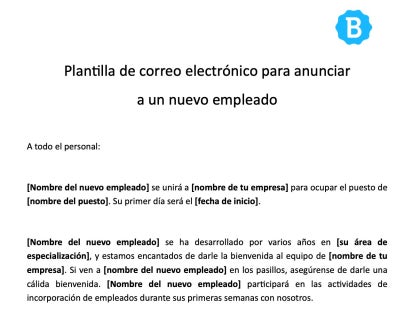 Descarga nuestra plantilla de correo electrónico para anunciar a un nuevo empleado, y personalízala según tus necesidades.