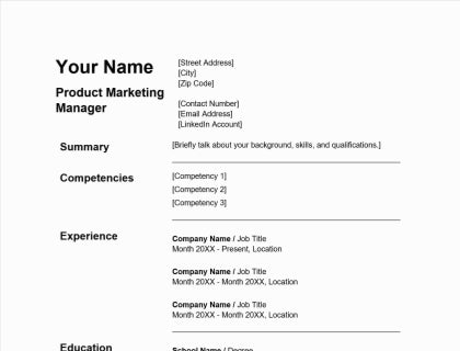 Download this product marketing manager resume template in Microsoft Word format.