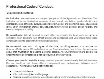 Use our free template to create your own customized code of conduct.
