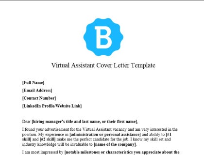 Download our free Virtual Assistant Cover Letter in MS Word format.